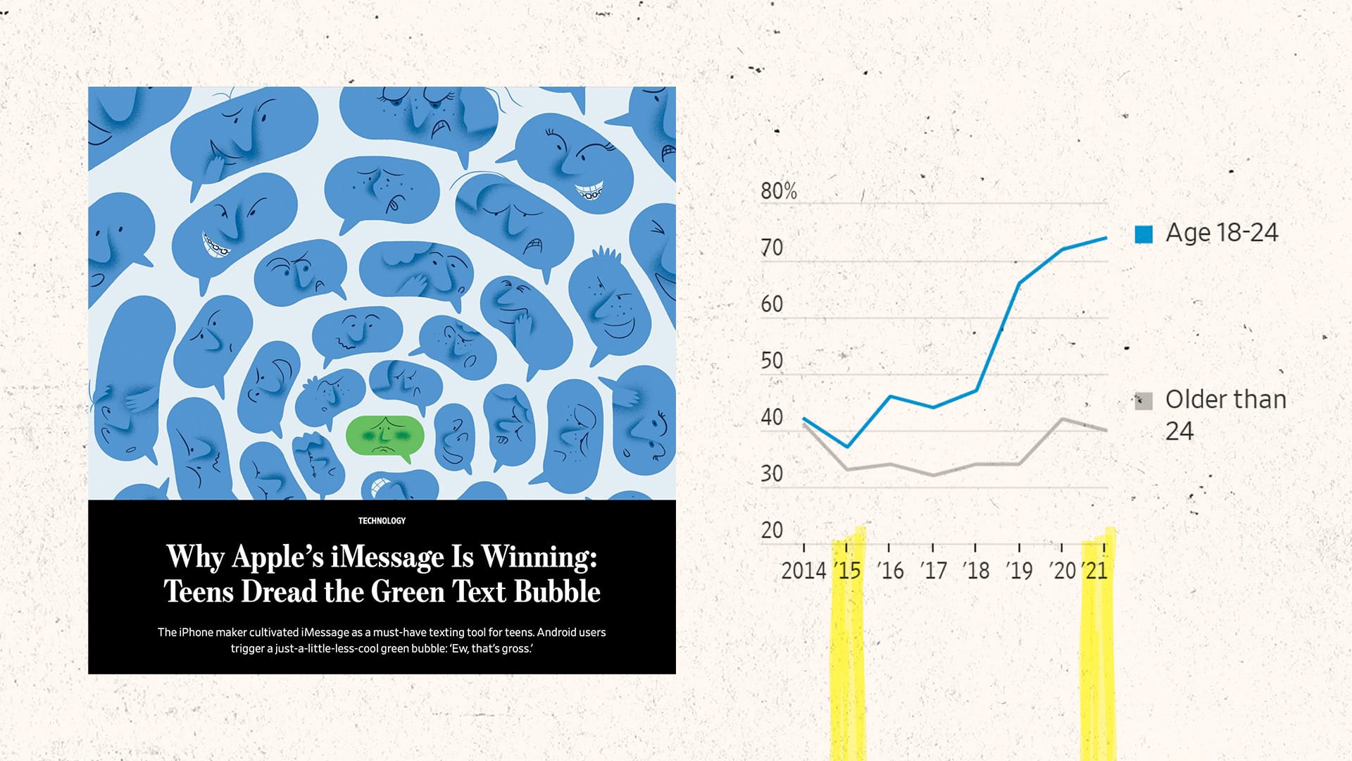 All of these things add up. These frustrations over not being fully heard. The inability to be emotionally efficient. It might not seem like a big deal when a message gets reduced back to SMS, but imagine how it would feel to have half of your vocabulary suddenly ripped away. Imagine you are able to use the full breath of language with some friends, but only half of that with others. And so, over time, these frustrations become inextricably linked with the color of your bubble. And we end up here. With 75% of young people in the U.S. owning an iPhone. Because it allows them to communicate how they really feel.