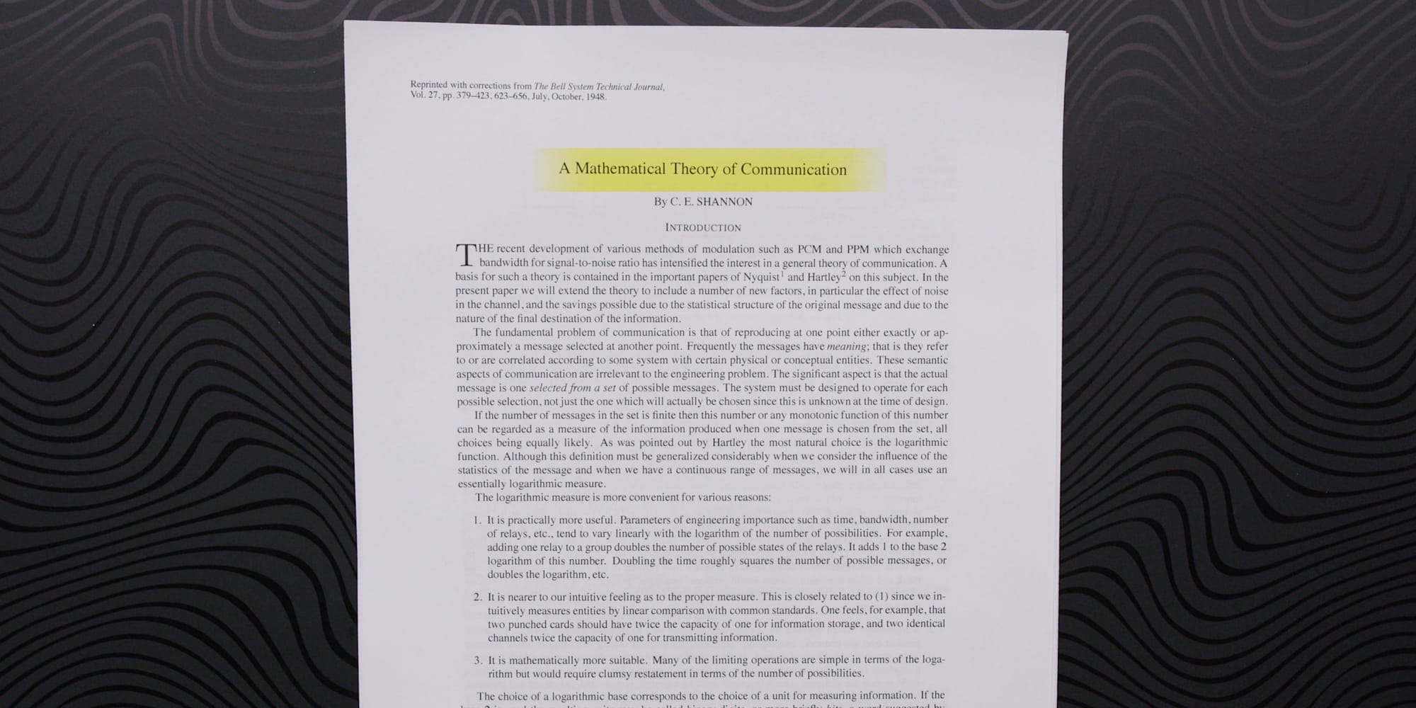 That first paper Shannon wrote? Groundbreaking. Fundamental. Absolutely set the stage for the future of computing. But this paper? A Mathematical Theory of Communication was so important, it became the entire foundation for the science of information theory. If A Symbolic Analysis of Relays and Switching Circuits theorized the components inside your computer, this paper theorized the code that runs on top.